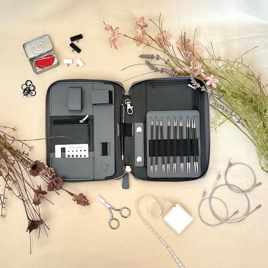 ChiaoGoo har pinnesett både i kirurgisk stål (TWIST) og i bambus (SPIN). Alt tilbehør, også vaiere, kan brukes både til TWIST- og SPIN-settene, slik at du kan bruke SPIN-vaiere til TWIST-pinner – og motsatt!